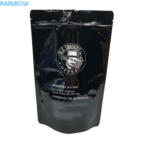 Sacs noirs brillants de 100g 200g 250g 500g de fermeture éclair de serrure de poche colorée faite sur commande de grains de café avec l'emballage de café d'entaille de larme